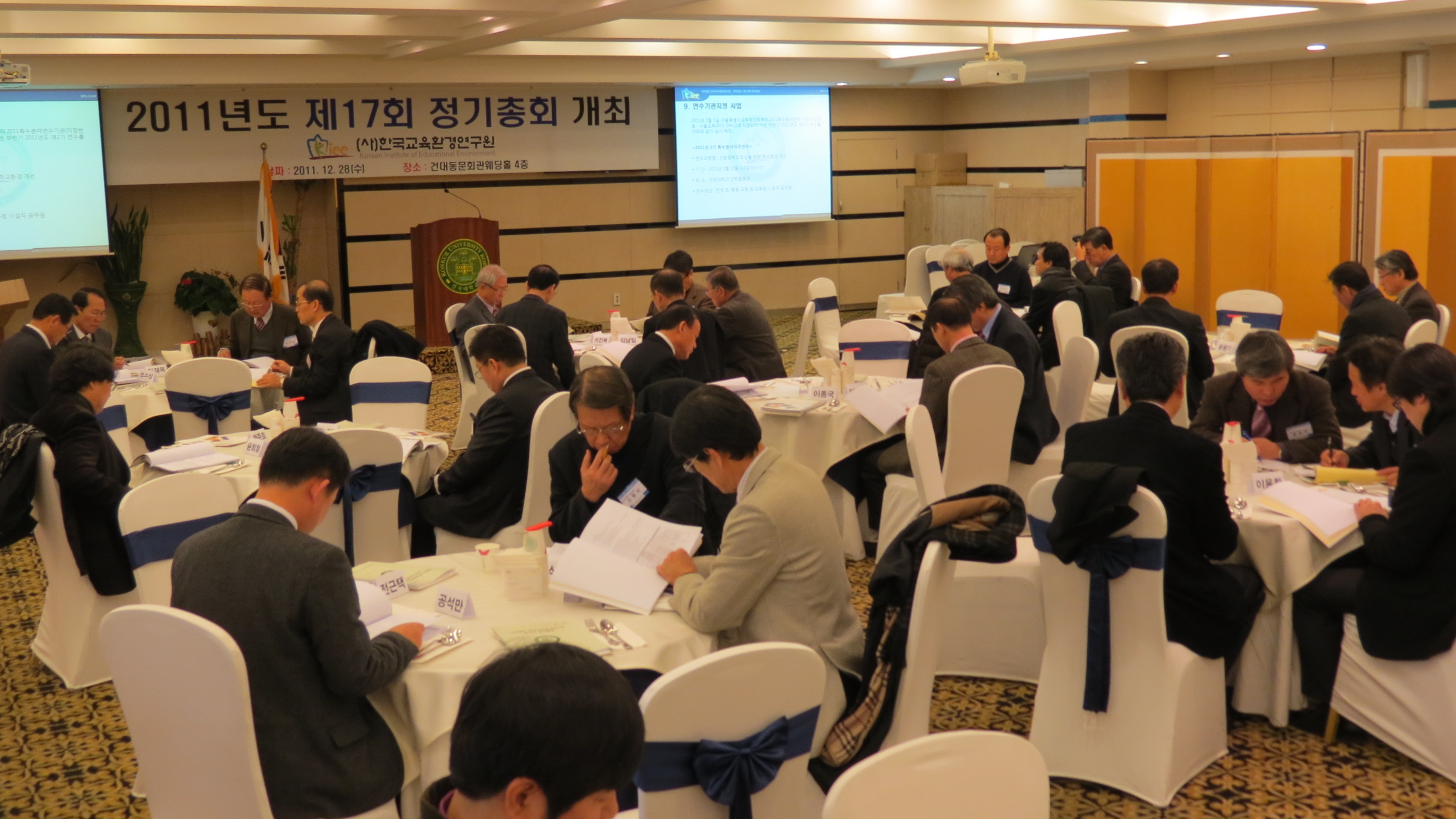 2011³â Á¦3Â÷ ÀÌ»çȸ°¡ 12¿ù 28ÀÏ ¿ÀÀü 10½Ã¿¡ Çѱ¹±³À°È¯°æ¿¬±¸¿ø ȸÀǽǿ¡¼ °³ÃֵǾú½À´Ï´Ù. ±Ý¹ø ÀÌ»çȸ¿¡¼´Â 2011³âµµ »ç¾÷º¸°í¿Í ±âŸ ºÎÀǾȰǿ¡ °üÇÑ »çÇ×ÀÌ ³íÀǵǾú½À´Ï´Ù. ¶ÇÇÑ 11½ÃºÎÅÍ °Ç´ëµ¿¹®È¸°ü 4Ãþ¿¡¼ Á¦17Â÷ Á¤±âÃÑȸ°¡ °³ÃֵǾî Âü¼®ÇÑ È¸¿øµé¿¡°Ô 2011³âµµ »ç¾÷³»¿ëÀ» º¸°íÇϰí ÀÌ»çȸ¿¡¼ ³íÀÇµÈ ±âŸ ºÎÀǾȰǿ¡ ´ëÇÑ ½ÂÀÎÀÌ ÀÌ·ç¾îÁ³½À´Ï´Ù.